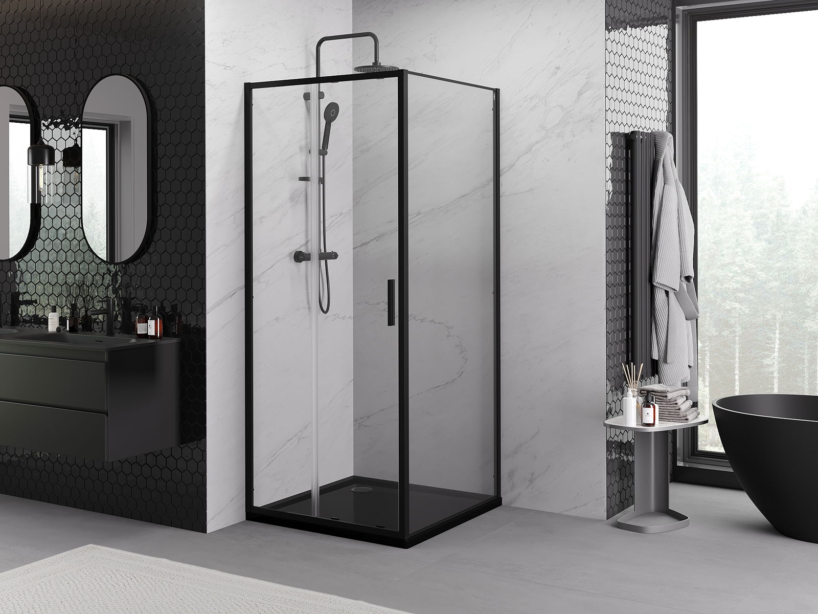 Mexen Rio čtvercová sprchová kabina 90 x 90 cm, transparentní, černá - 860-090-090-70-00