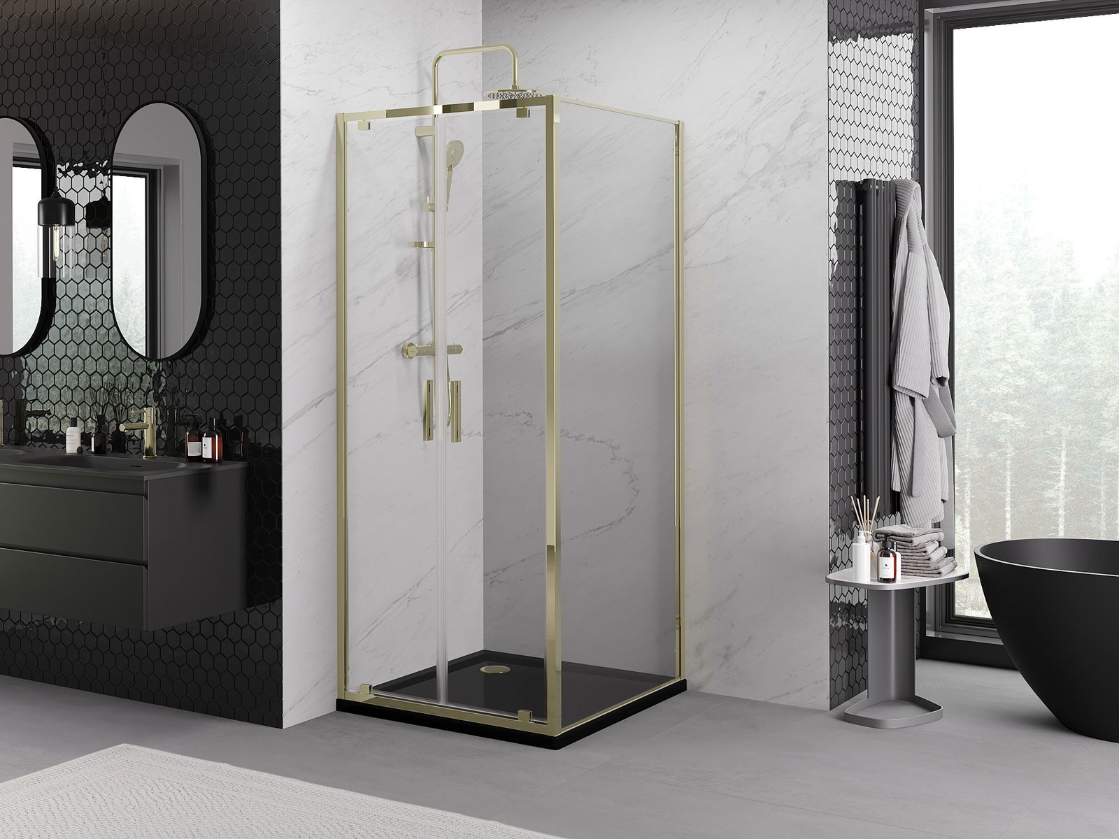 Mexen Exo sprchový kout s otočnými dveřmi 110 x 110 cm, transparentní, zlatý - 8182-110-110-50-00