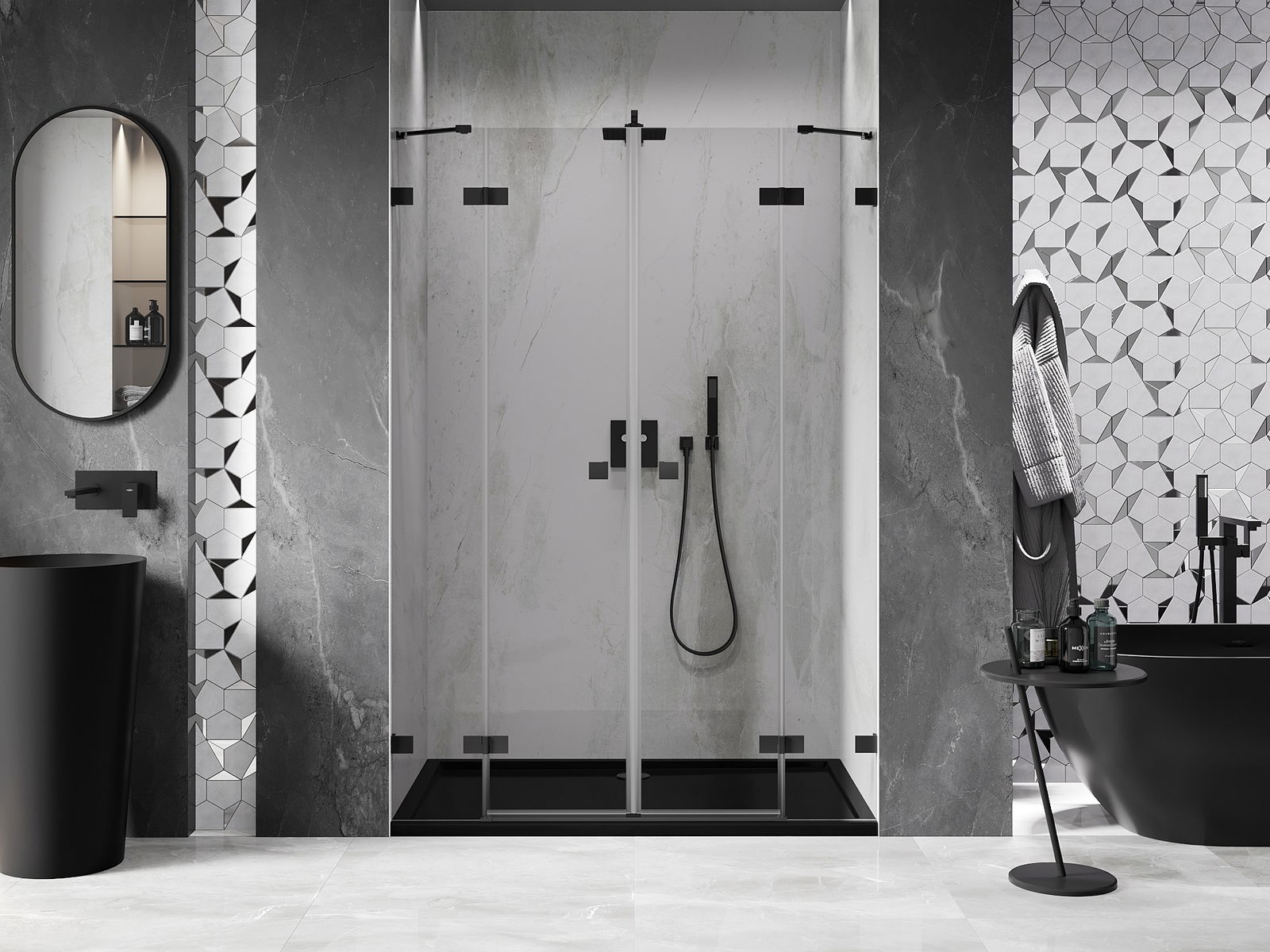 Mexen Lunar Duo sprchové dveře otevírací 140 cm, průhledné, černé - 834D-140-000-70-00
