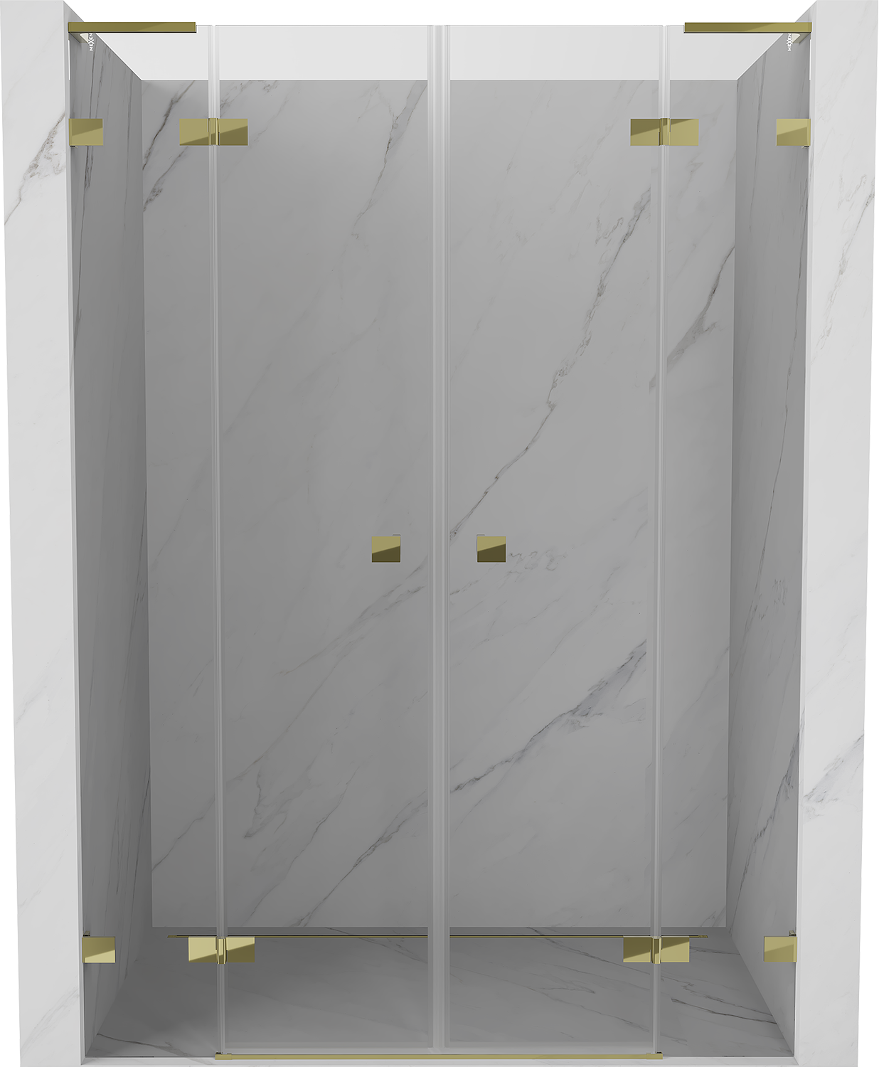 Mosazné úchyty a panty v rovině s plochou skla