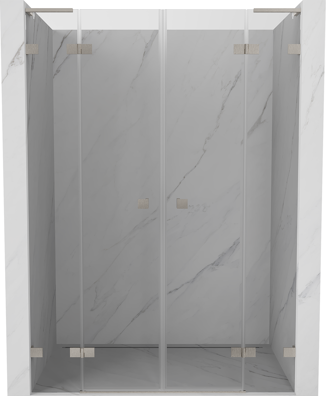 Mosazné kování a panty zarovnané s plochou skla
