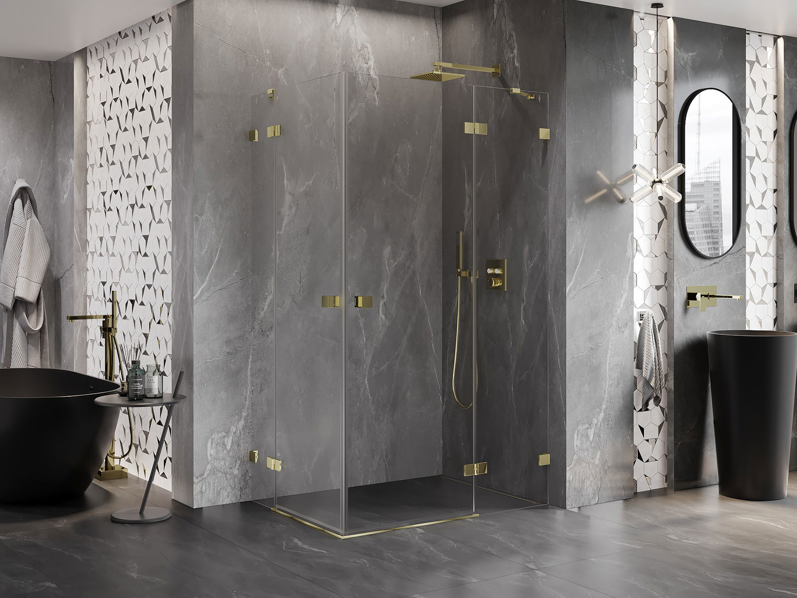 Mexen Lunar Dvojitá sprchová zástěna pravá 95 x 85 cm, transparentní, zlatá - 834-095P-085L-50-00