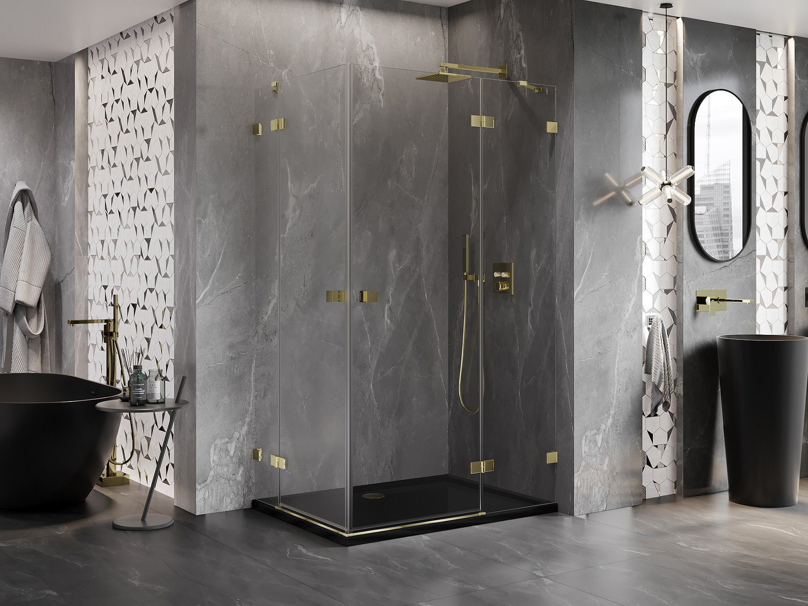 Spony a závěsy byly vyrobeny z velmi odolné mosazi a navíc vytvářejí zarovnanou plochu skla. Je to vynikající volba, která kombinuje eleganci, odolnost a moderní design. Díky těmto řešením získává sprcha na estetice a zároveň usnadňuje udržování čistoty.