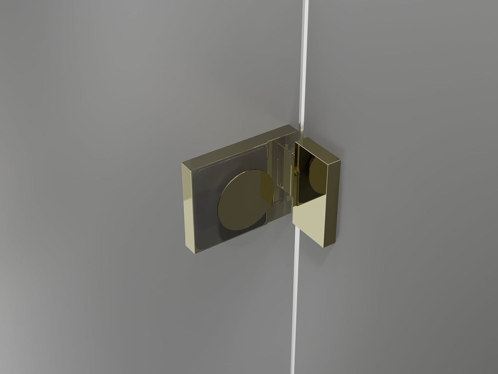 Mosazné úchyty a panty zarovnané s povrchem skla