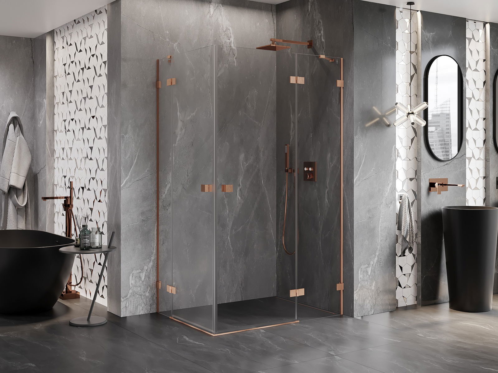 Mexen Lunar Duo sprchový kout otevíravý pravý 120 x 105 cm, transparentní, kartáčovaná měď - 834-120P-105L-65-00