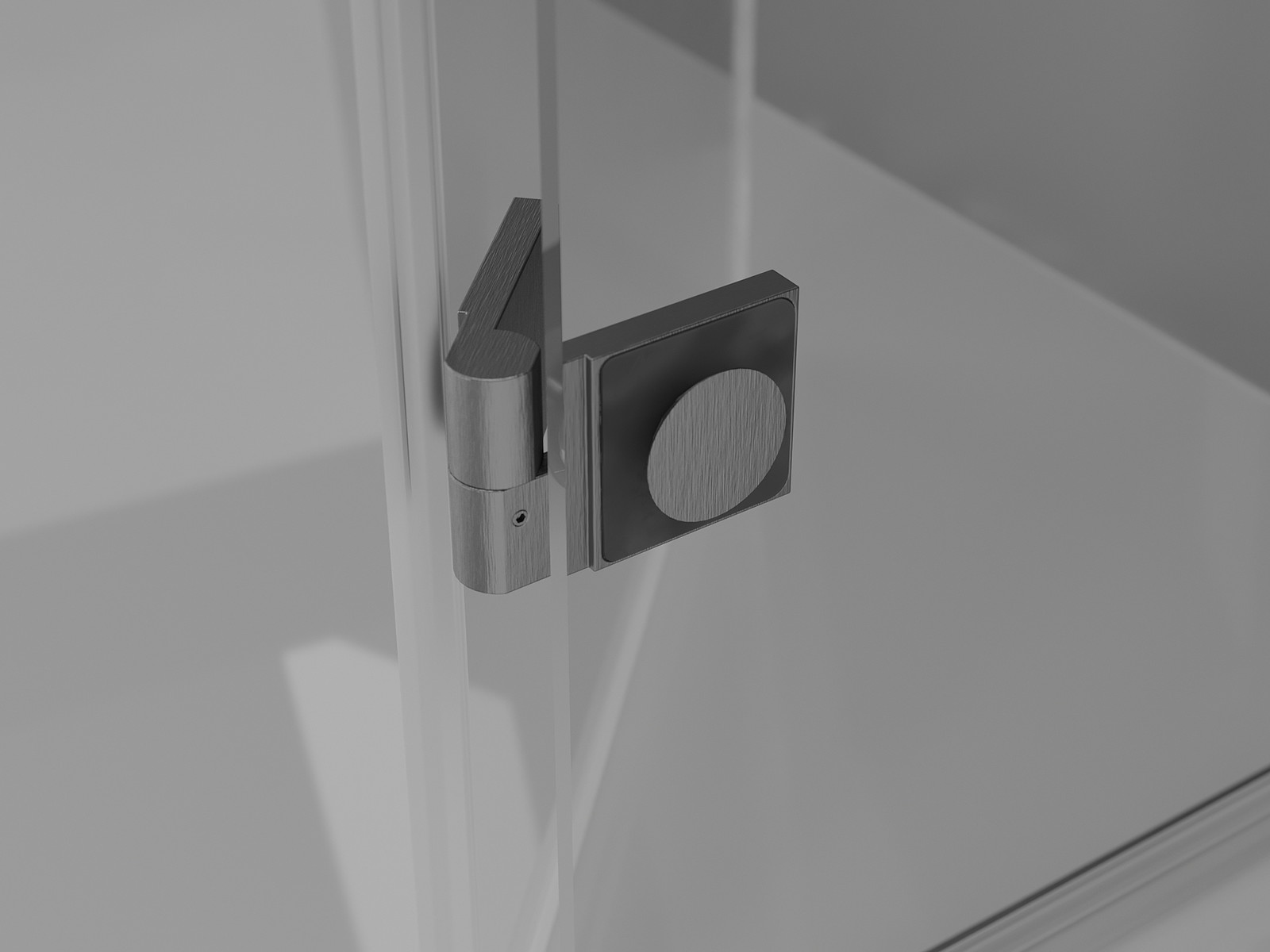 Mosazné kliky a panty zarovnané s povrchem skla