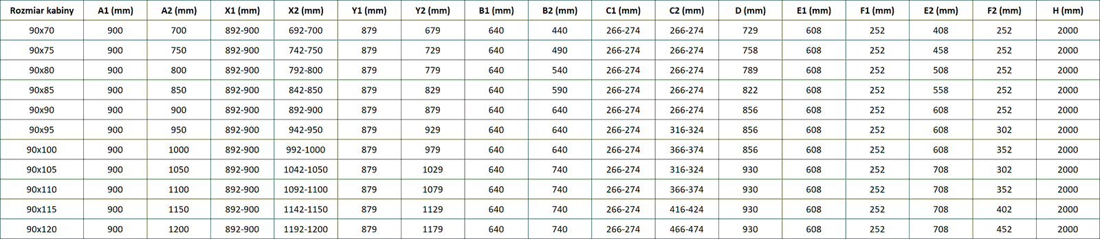 Velikost: 90x85 cm (pravé dveře 90 cm, levé dveře 85 cm)