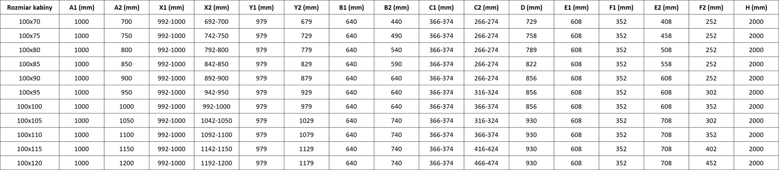 Rozměr: 100x90 cm (pravé dveře 100 cm, levé dveře 90 cm)