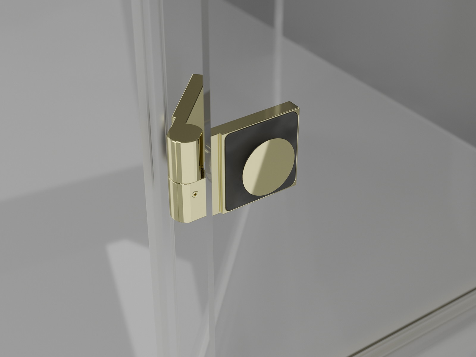 Mosazné úchyty a panty zarovnané s plochou skla