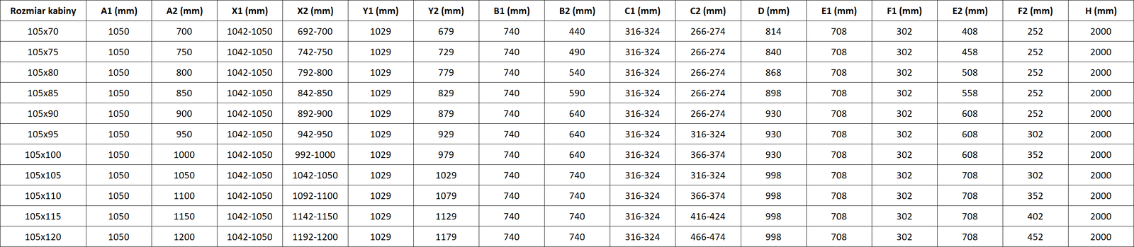 Sprchové kouty, dveře a stěny jsou standardně přizpůsobeny pro montáž na sprchové vaničky určitých rozměrů. Právě tyto rozměry jsou uvedeny v názvu nebo popisu výrobku. Je však třeba mít na paměti, že skutečné rozměry prvků se mohou mírně lišit od nominálních hodnot. V případě plánované instalace přímo na podlahu se doporučuje pečlivě zkontrolovat vnější rozměry a uspořádání prvků podle technického výkresu.