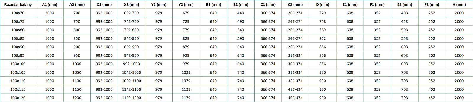 Velikost: 100x90 cm (pravé dveře 100 cm, levé dveře 90 cm)