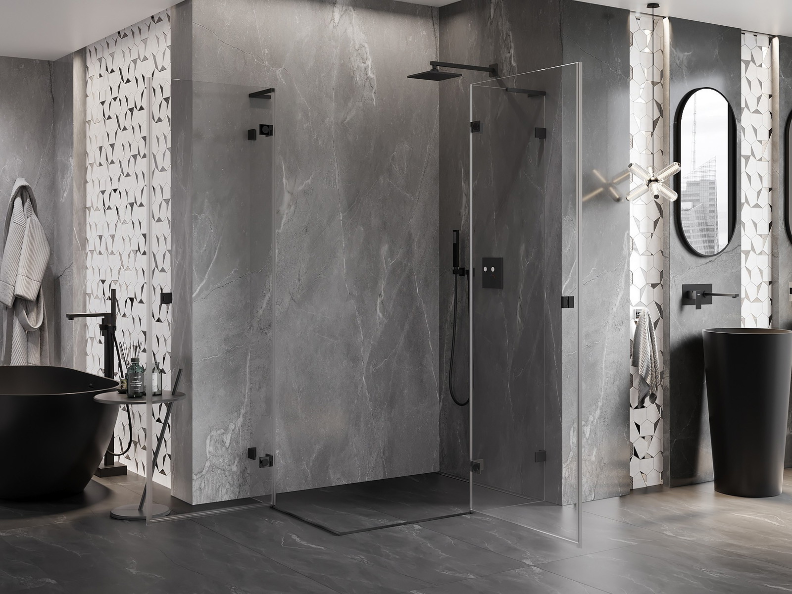 Praktická a pohodlná rukojeť je vyrobena z odolného a trvanlivého kovu. Moderní tvar ve spojení s povrchovou úpravou, která ladí s barvou profilů, dodává celku moderní a stylový vzhled, zdůrazňující estetiku každé koupelny.