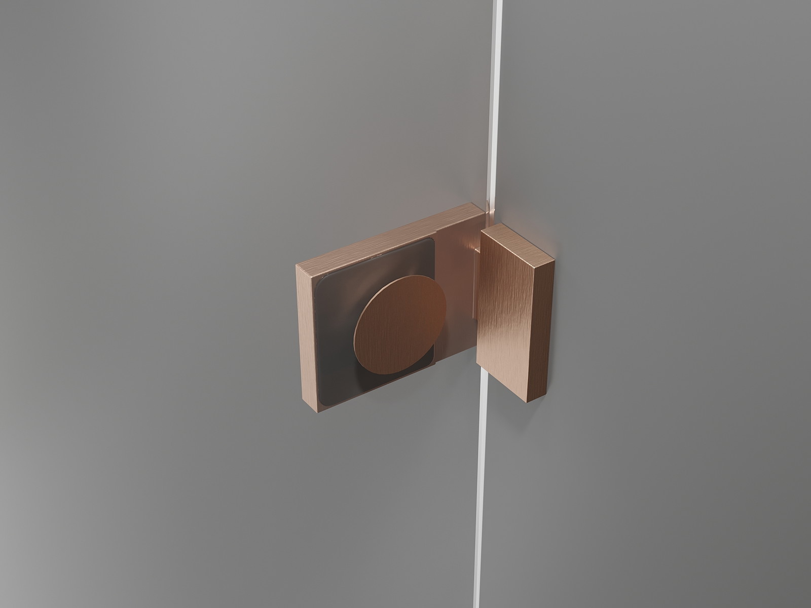Mosazné úchyty a panty zarovnané s skleněnou plochou