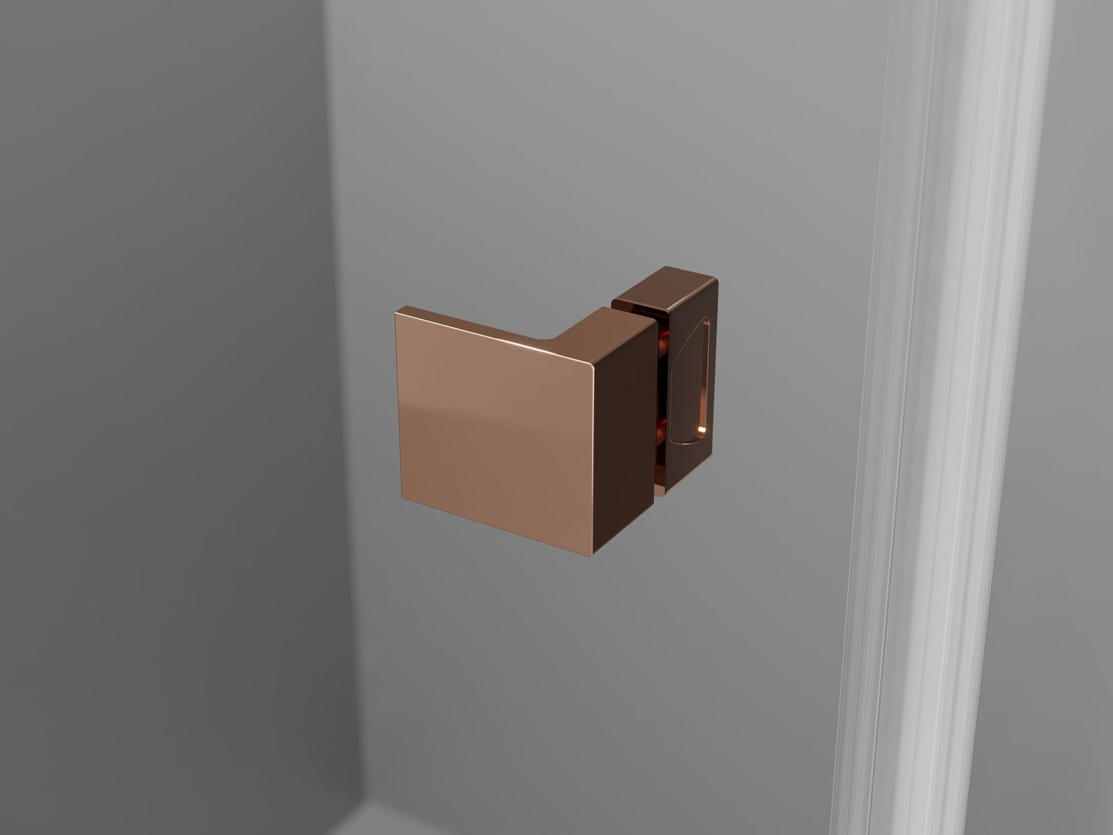 Mosazné kliky a závěsy zapuštěné do skleněné plochy