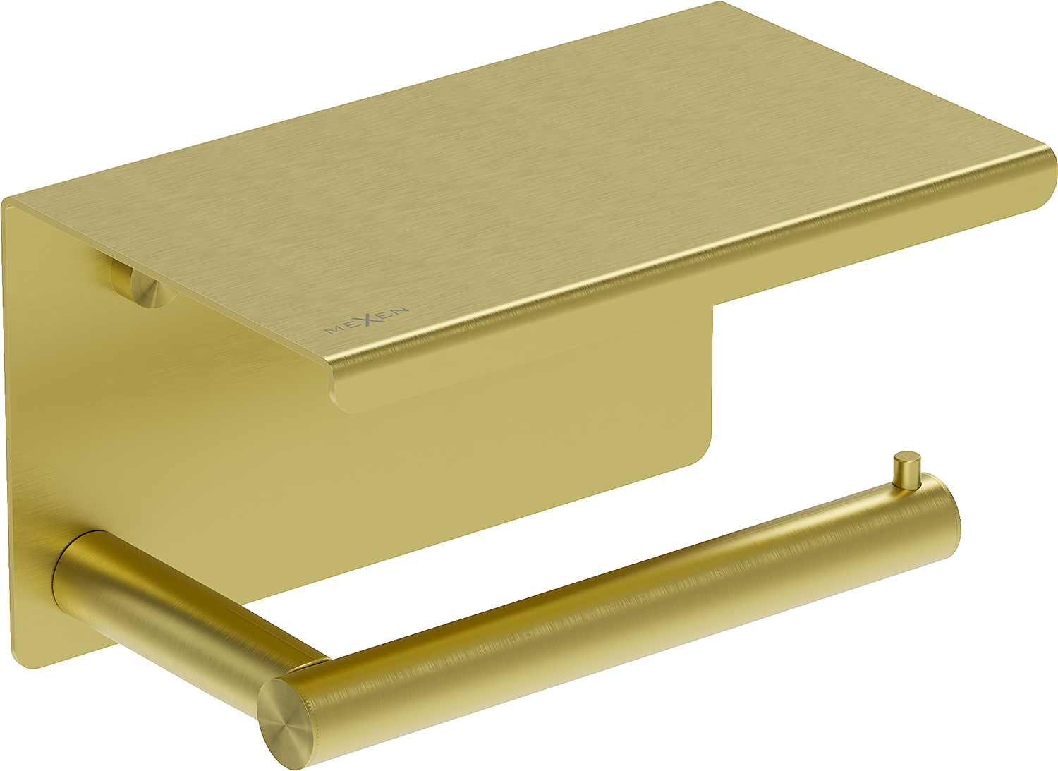 Mexen Loop držák na toaletní papír s poličkou, zlatý kartáčovaný - 70A71022-55