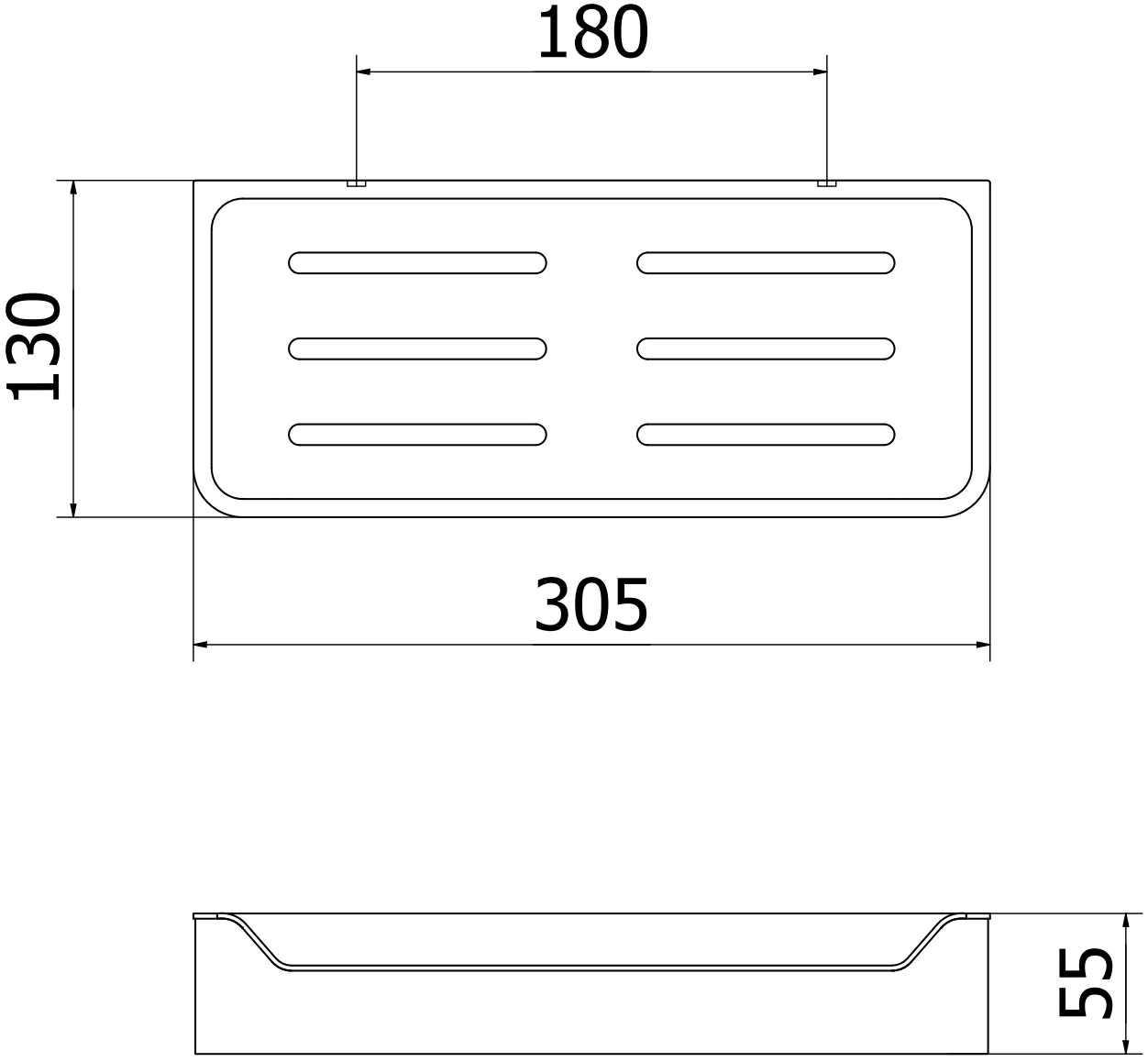 Polička má otvory, které zajišťují rychlý odtok vody