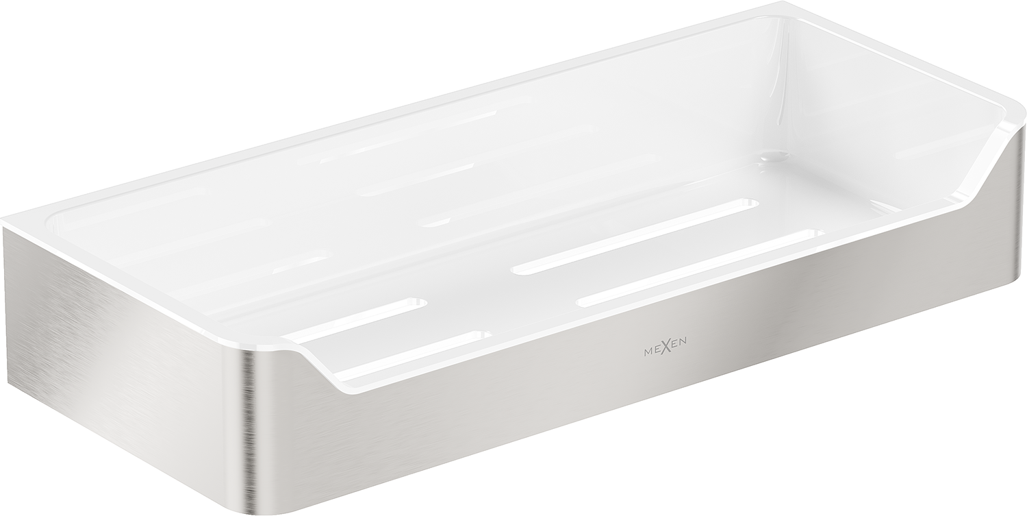 Mexen Rivon-L koupelnový košík je ideální řešení pro ty, kteří hledají funkční doplňky do koupelny. Vyrobeno z vysoce kvalitní nerezové oceli AISI 304 a plastu, zajišťuje odolnost a odolnost proti korozi. Jeho elegantní povrchová úprava v kartáčovaném niklu přidává styl a modernost. Košík má rozměry 30,5 cm šířky, 5,5 cm výšky a 13 cm vzdálenosti od zdi. Polička s otvory umožňuje rychlé odvodňování vody, což zabraňuje matování.