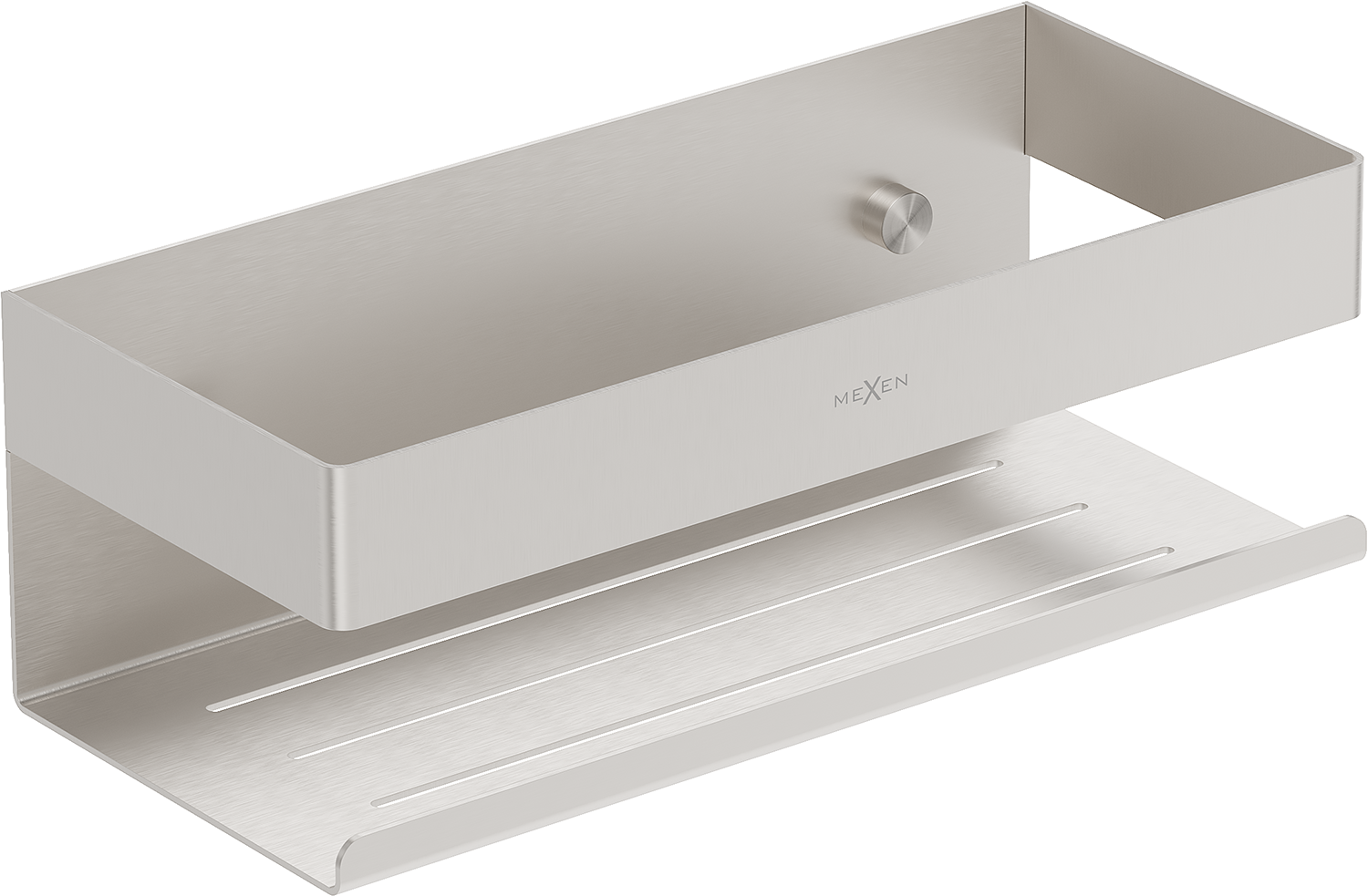 Mexen Brin-L koupelnový košík je elegantním a funkčním doplňkem každé koupelny. Vyroben z vysoce kvalitní nerezové oceli AISI 304, poskytuje výjimečnou trvanlivost a odolnost proti matování i korozi. Krásná povrchová úprava v kartáčovaném niklu dodává klasický šarm. Košík o šířce 23 cm, výšce 8 cm a hloubce 10 cm od zdi se ideálně začlení do každého prostoru. Navíc otvory na poličce umožňují rychlý odvod vody, což zvyšuje jeho funkčnost.