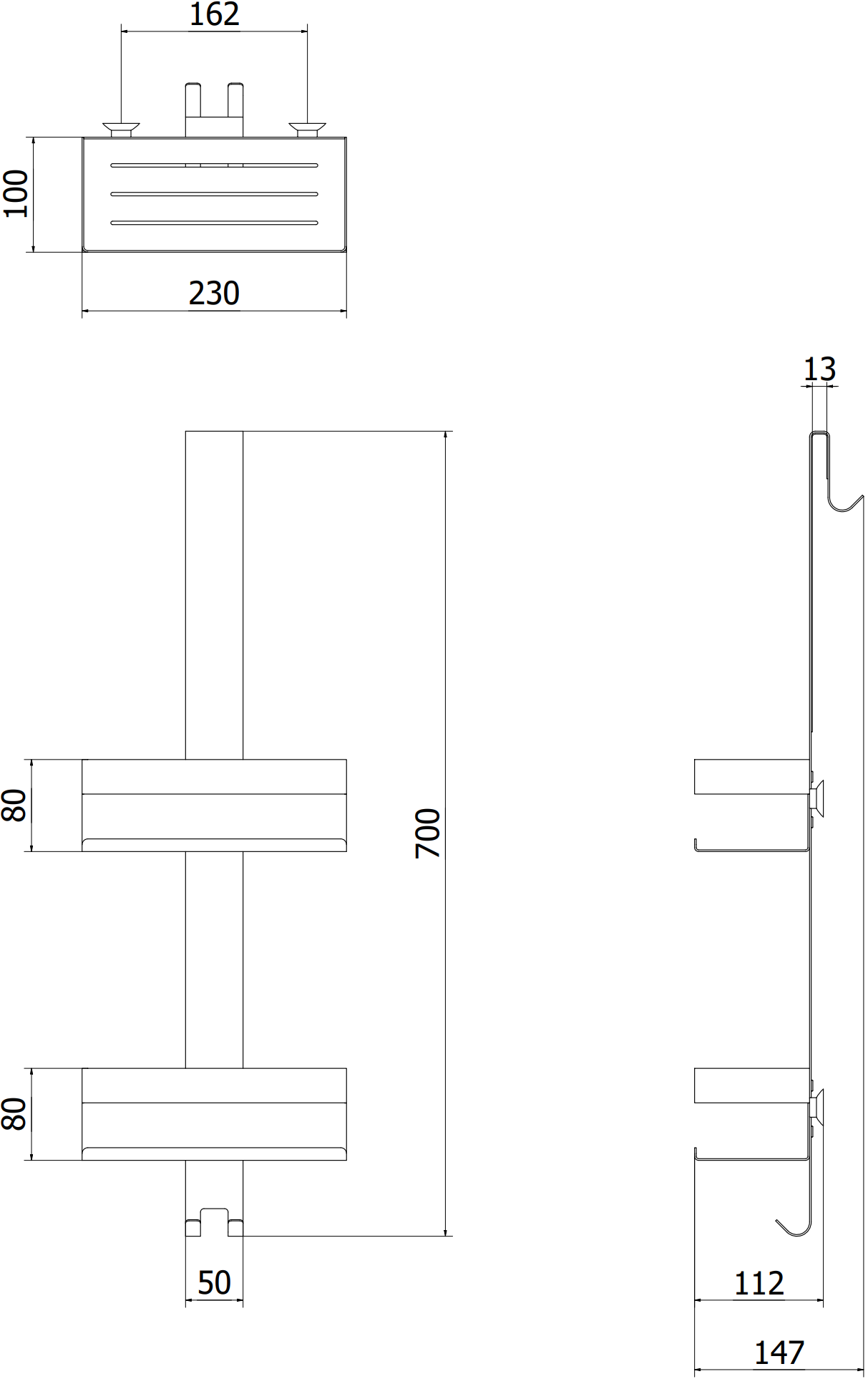 Háčky na obou stranách pro zavěšení doplňků a ručníků