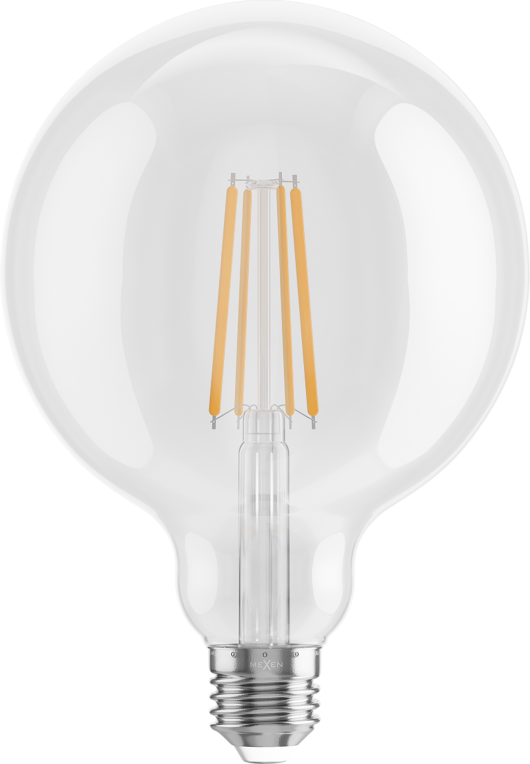 Mexen Vintis LED žárovka s vláknem E27, G125, 8W, Teplá - 2700K, 1055 lm, čirá - L158-E27-0827-00