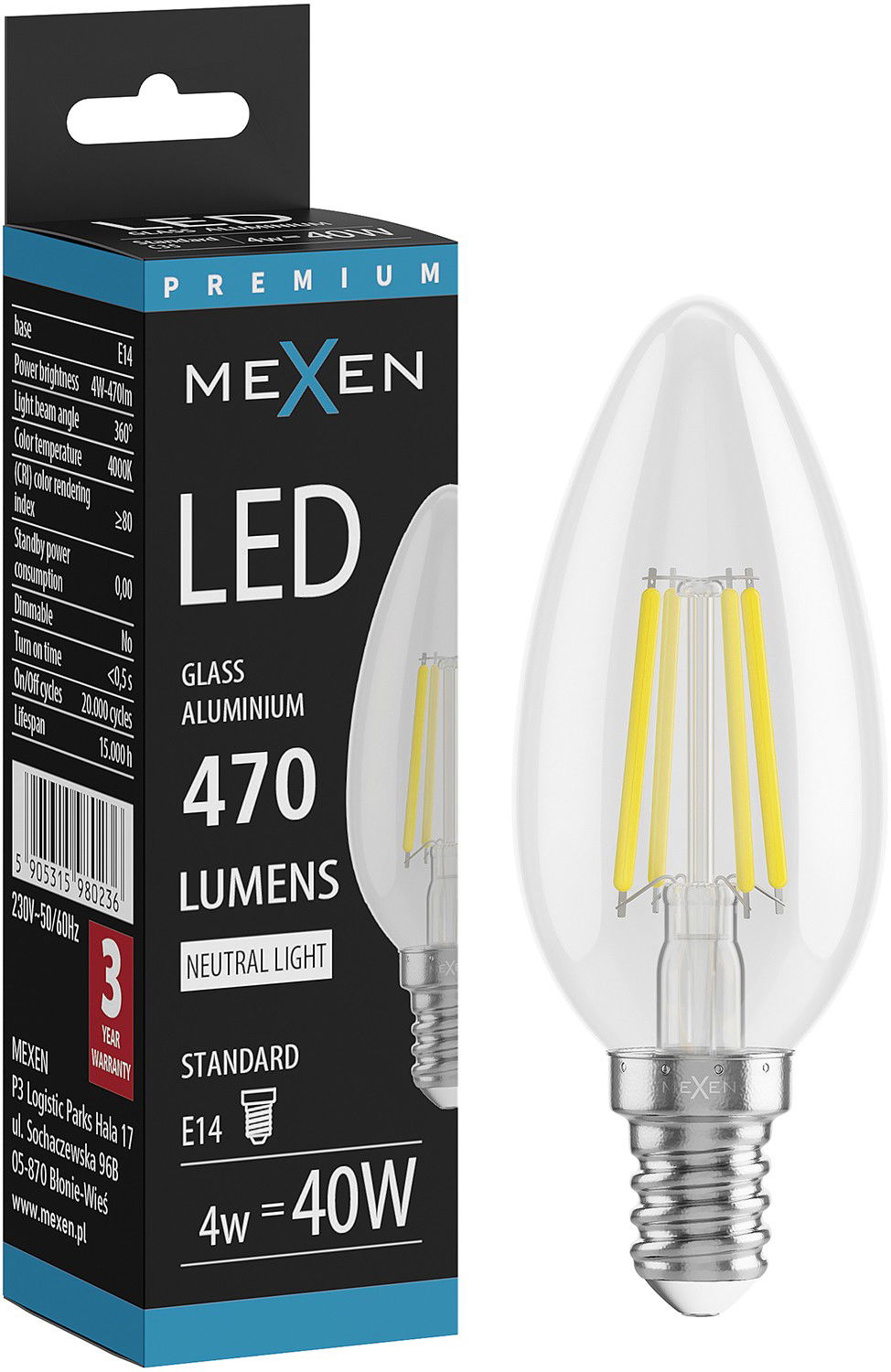 Mexen Vintis LED žárovka filament E14, C35, 4W, Neutrální - 4000K, 470 lm, čirá - L154-E14-0427-00 - L154-E14-0440-00