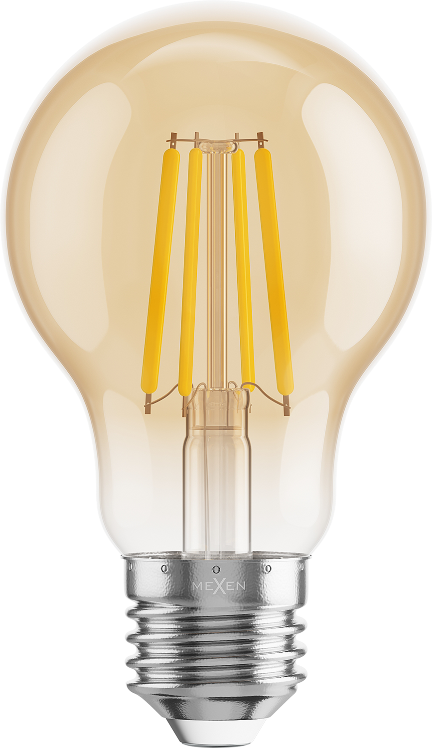 Mexen Vintis LED žárovka filament E27, A60, 6W, Teplá - 2700K, 600 lm, jantarová - L150-E27-0627-50