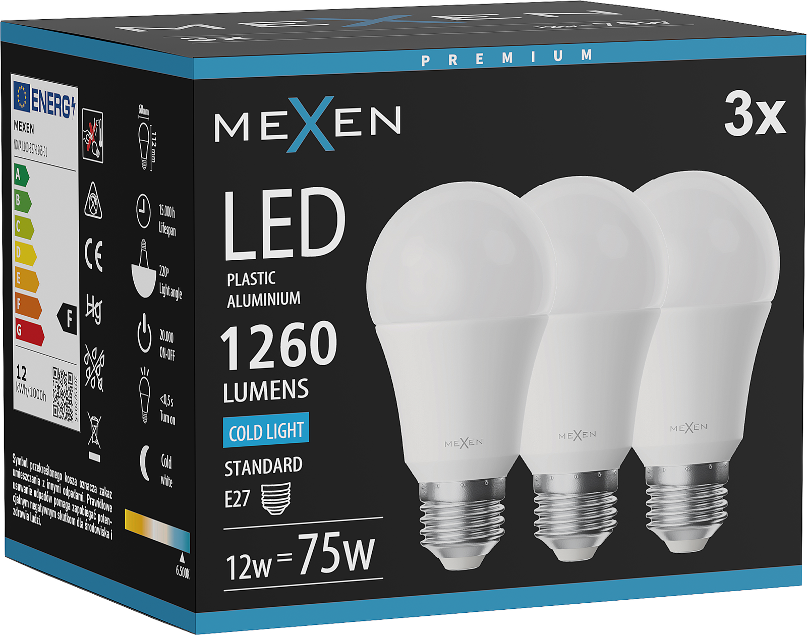 Mexen Nova Žárovka LED E27, A60, 6W, Studená - 6500K, 630 lm - L100-E27-0665-01