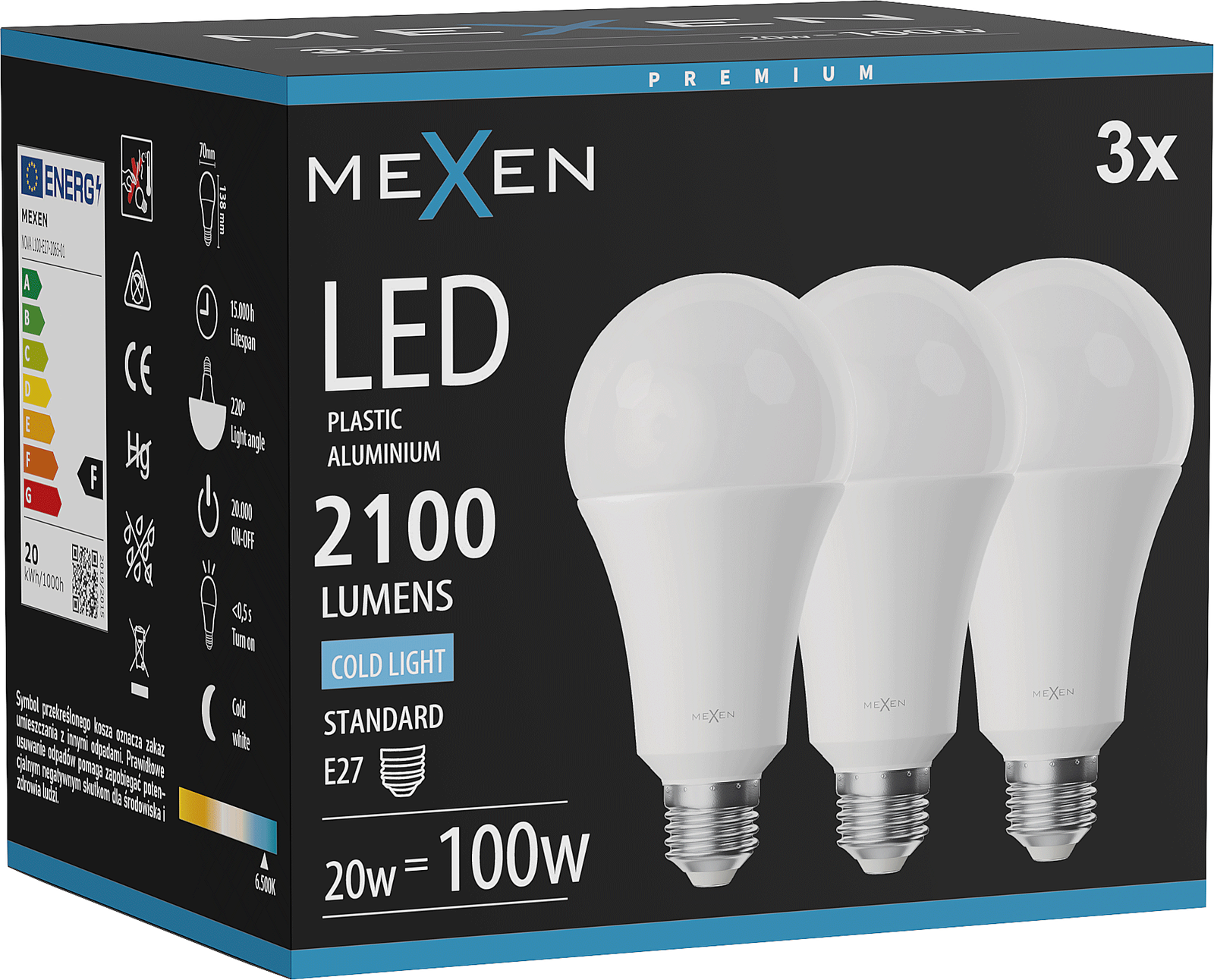 Mexen Nova Žárovka LED E27, A60, 6W, Studená - 6500K, 630 lm - L100-E27-0665-01