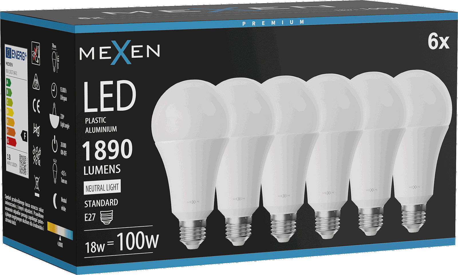 Mexen Nova LED žárovka E27, A60, 6W, Neutrální - 4000K, 630 lm - L100-E27-0640-01