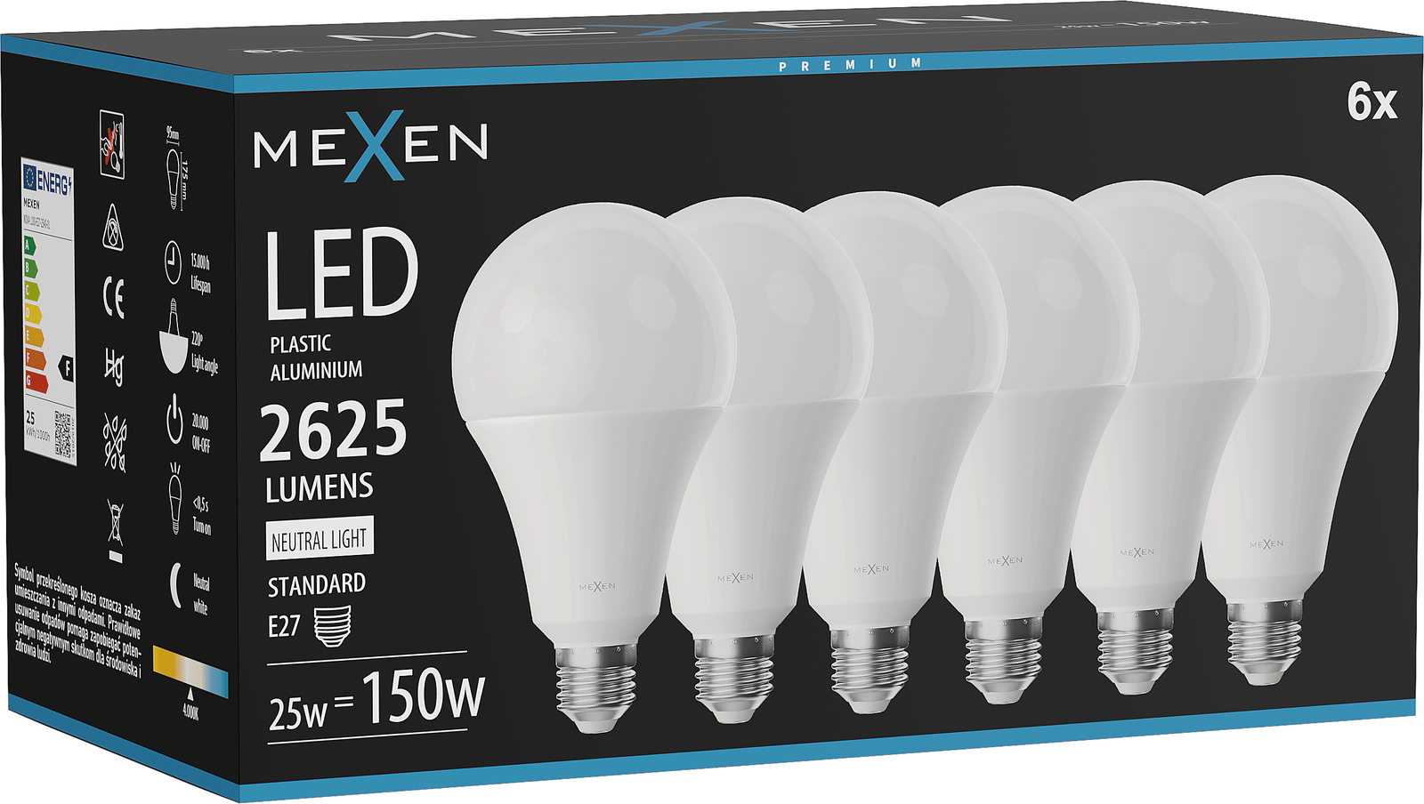 Mexen Nova LED žárovka E27, A60, 6W, Neutrální - 4000K, 630 lm - L100-E27-0640-01