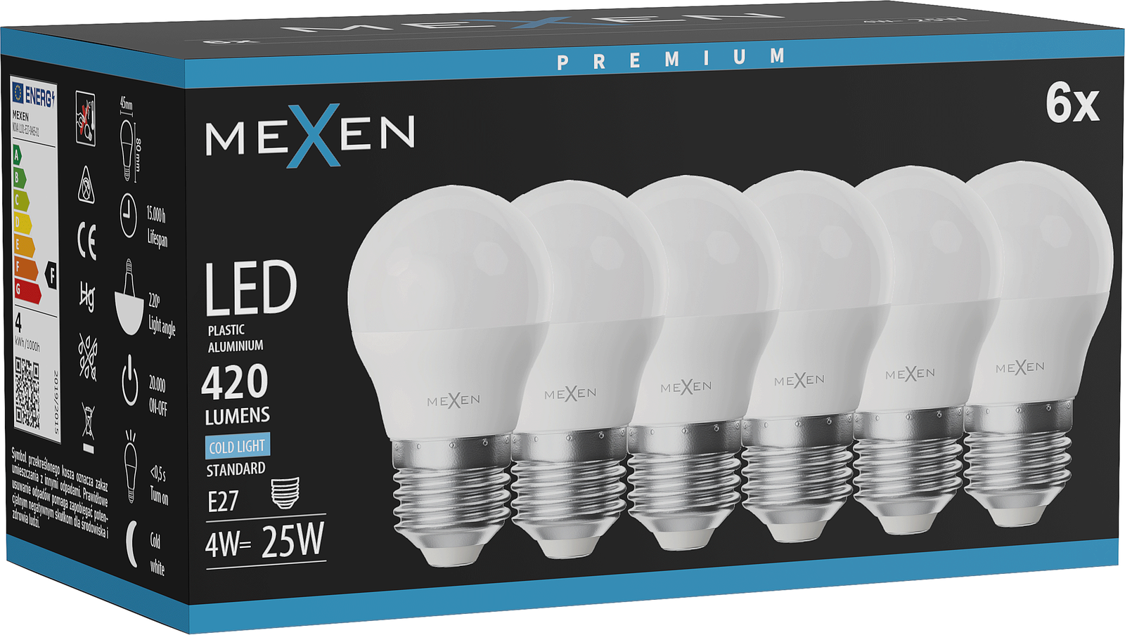 Mexen Nova Žárovka LED E27, A60, 6W, Studená - 6500K, 630 lm - L100-E27-0665-01