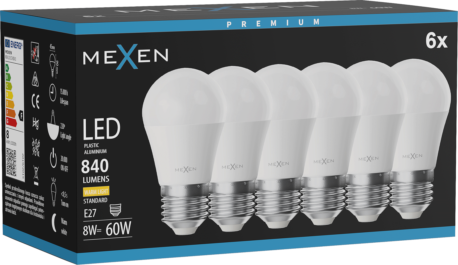 Mexen Nova LED žárovka E27, A60, 6W, Teplá - 3000K, 630 lm - L100-E27-0630-01