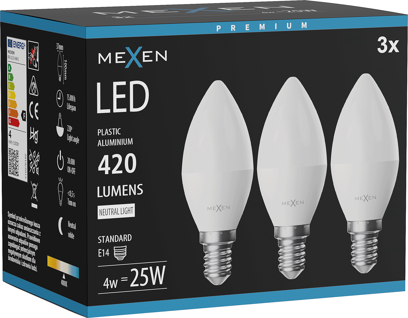 Mexen Nova LED žárovka E27, A60, 6W, Neutrální - 4000K, 630 lm - L100-E27-0640-01