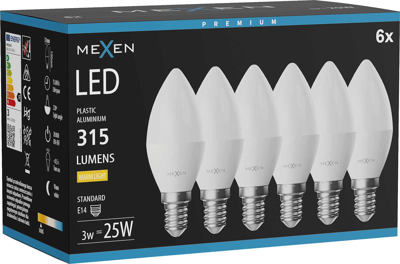 Mexen Nova LED žárovka E27, A60, 6W, Teplá - 3000K, 630 lm - L100-E27-0630-01