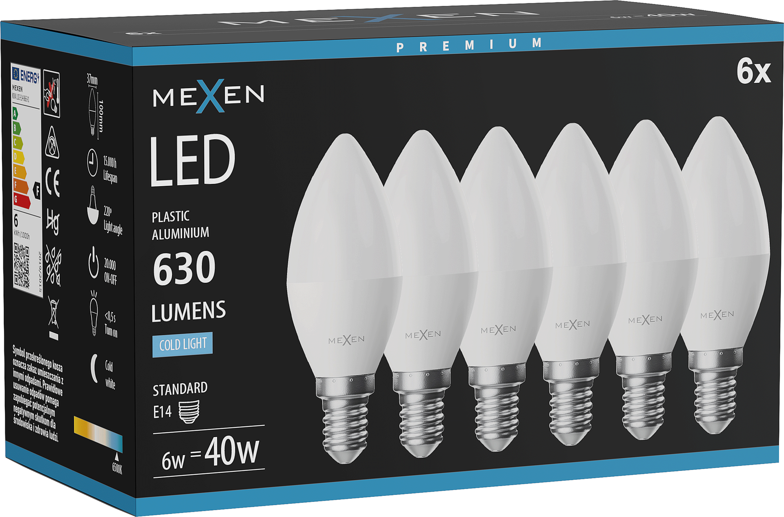 Mexen Nova Žárovka LED E27, A60, 6W, Studená - 6500K, 630 lm - L100-E27-0665-01
