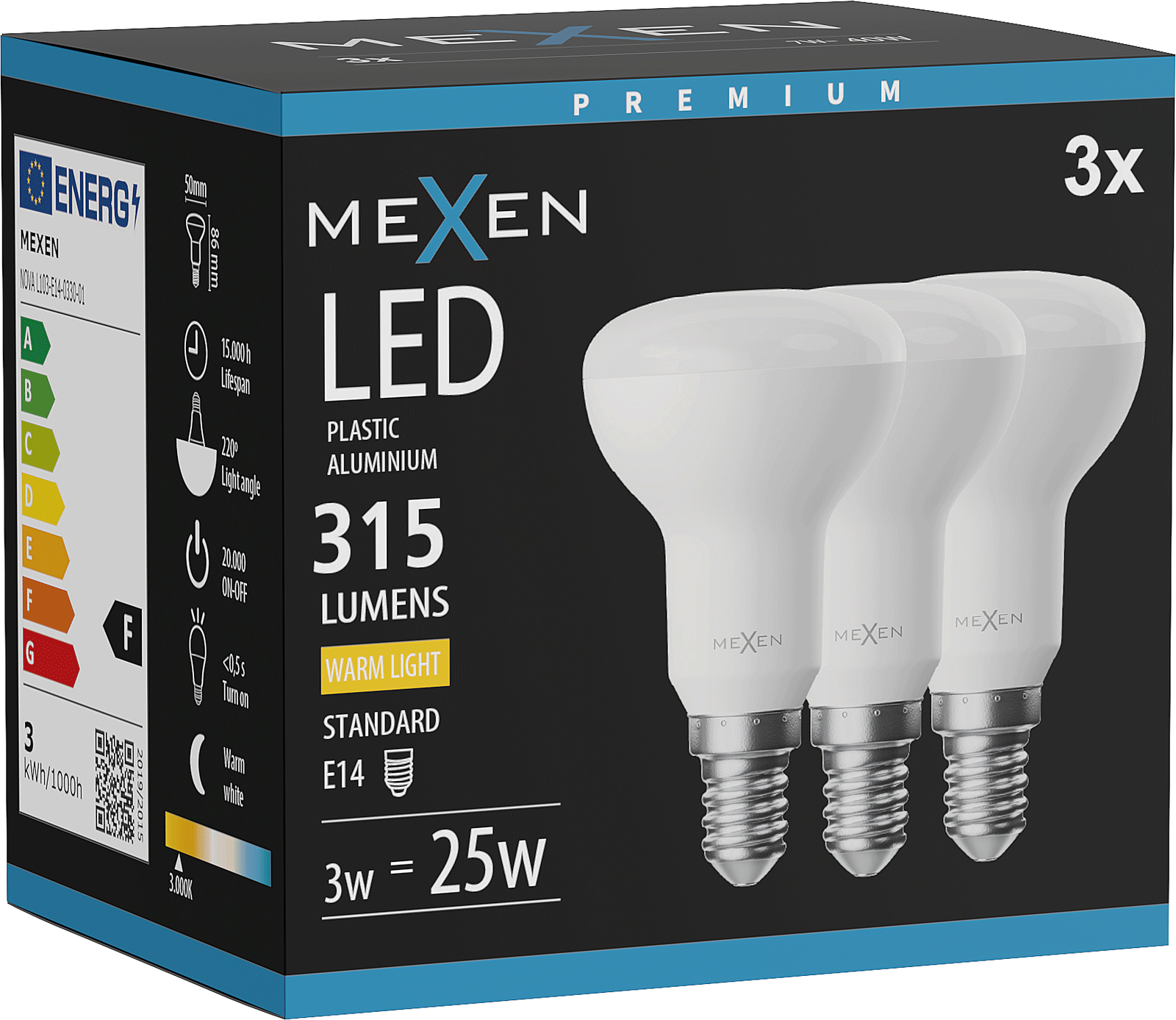 Mexen Nova 3x LED žárovka E14, R50, 3W, Teplá - 3000K, 315 lm - L103-E14-0330-01x03