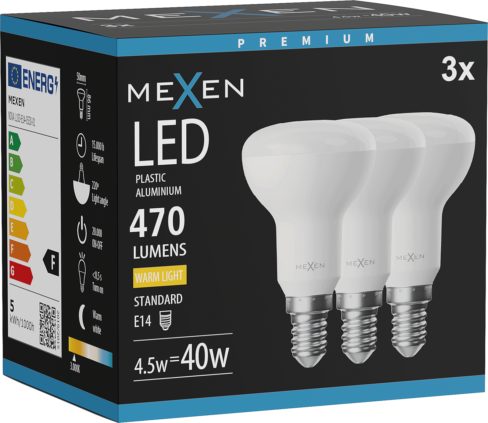 Mexen Nova 3x LED žárovka E14, R50, 4,5W, Teplá - 3000K, 470 lm - L103-E14-0530-01x03