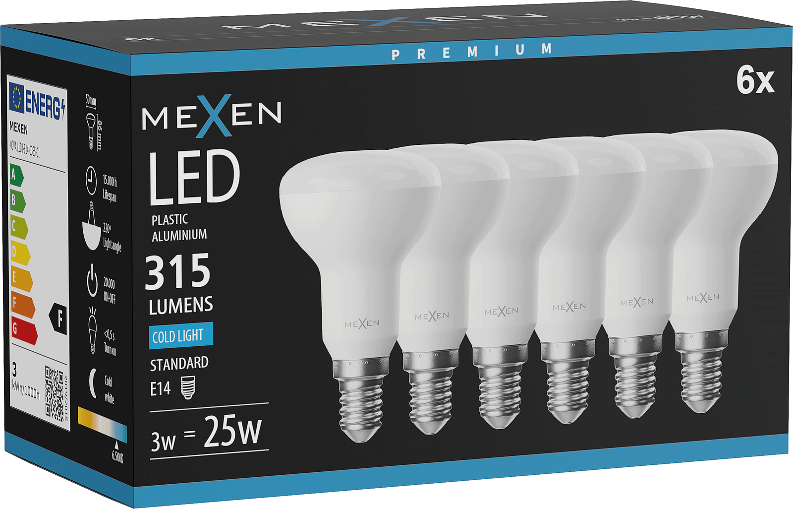 Mexen Nova 6x LED žárovka E14, R50, 3W, Studená - 6500K, 315 lm - L103-E14-0365-01x06