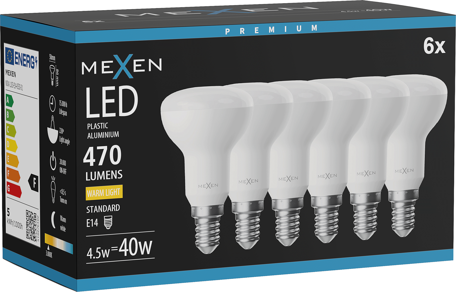 Mexen Nova 6x LED žárovka E14, R50, 4,5W, Teplá - 3000K, 470 lm - L103-E14-0530-01x06
