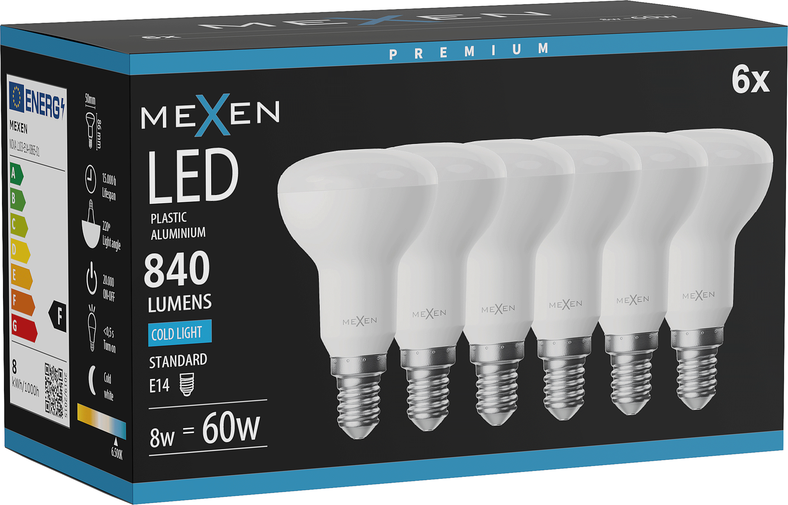 Mexen Nova 6x LED žárovka E14, R50, 8W, Studená - 6500K, 840 lm - L103-E14-0865-01x06