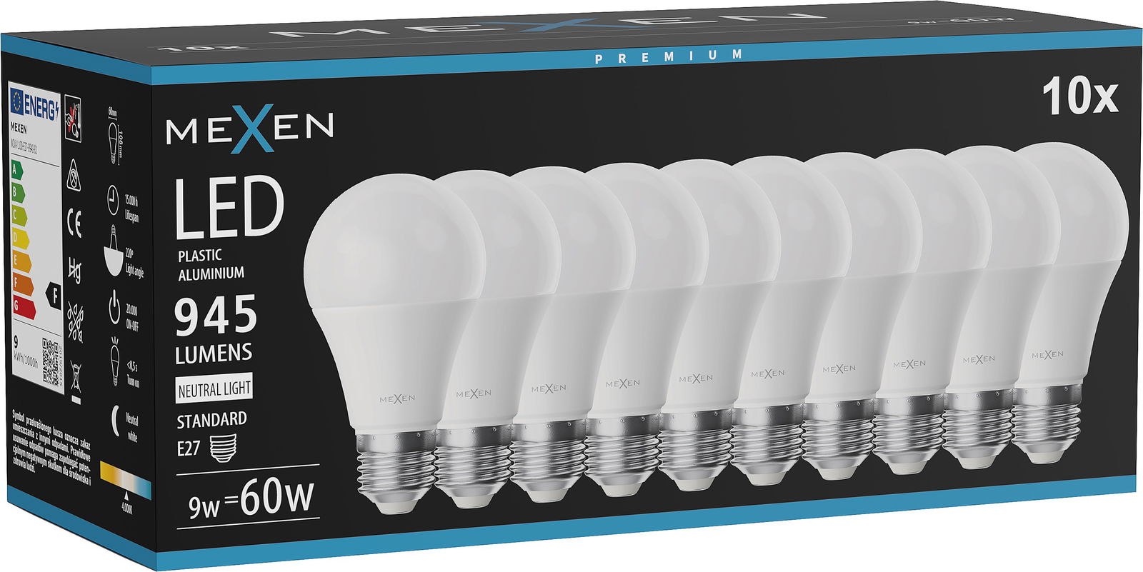 Mexen Nova 10x LED žárovka E27, A60, 9W, Neutrální - 4000K, 945 lm - L100-E27-0940-01x10