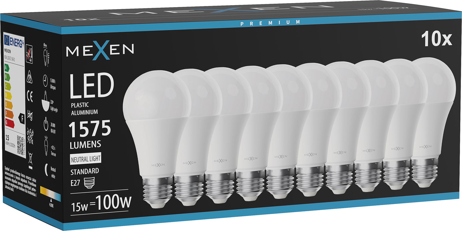 Mexen Nova 10x LED žárovka E27, A60, 15W, Neutrální - 4000K, 1575 lm - L100-E27-1540-01x10