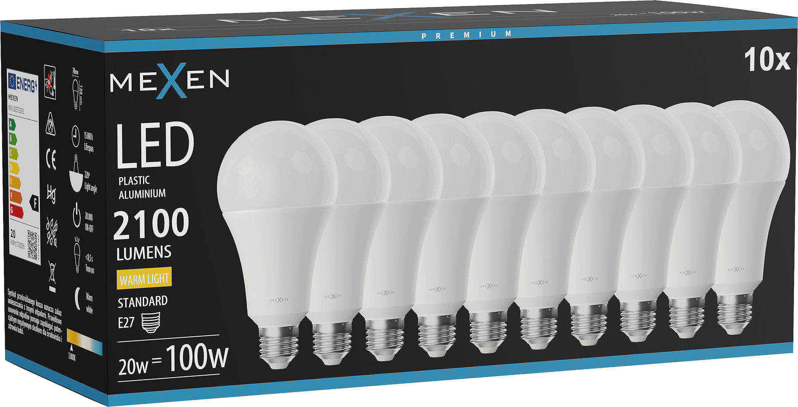 Mexen Nova 10x LED žárovka E27, A70, 20W, Teplá - 3000K, 2100 lm - L100-E27-2030-01x10