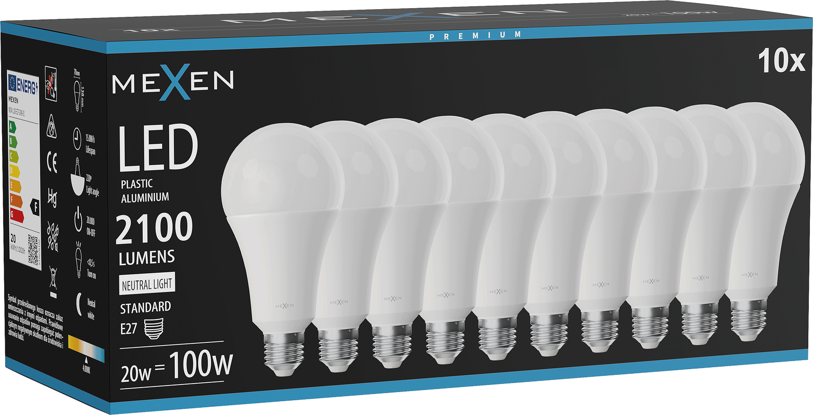 Mexen Nova 10x LED žárovka E27, A70, 20W, Neutrální - 4000K, 2100 lm - L100-E27-2040-01x10