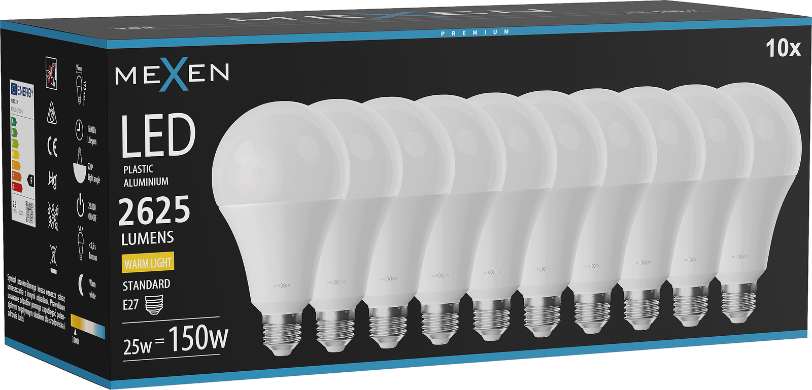 Mexen Nova 10x LED žárovka E27, A95, 25W, Teplá - 3000K, 2625 lm - L100-E27-2530-01x10