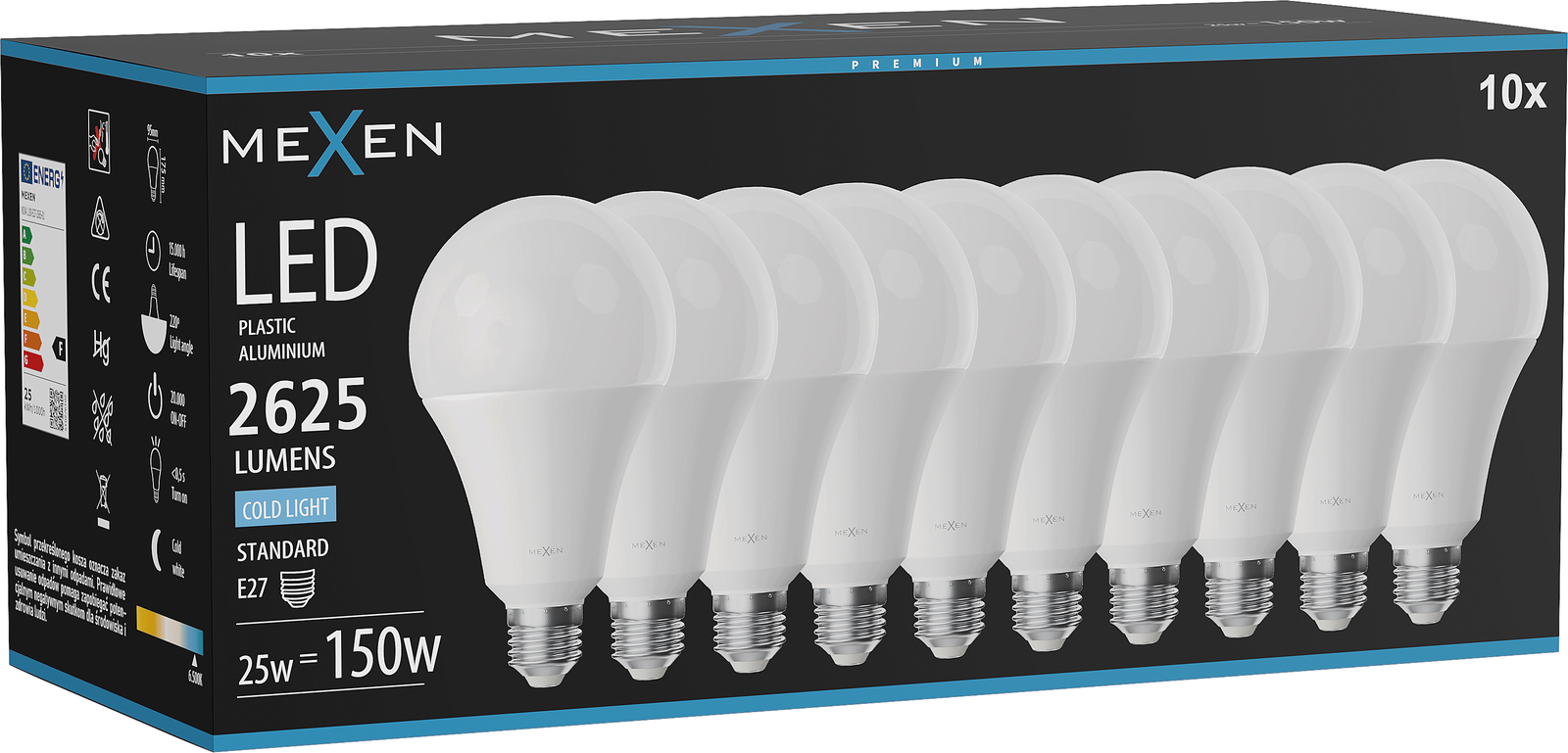 Mexen Nova 10x LED žárovka E27, A95, 25W, Studená - 6500K, 2625 lm - L100-E27-2565-01x10