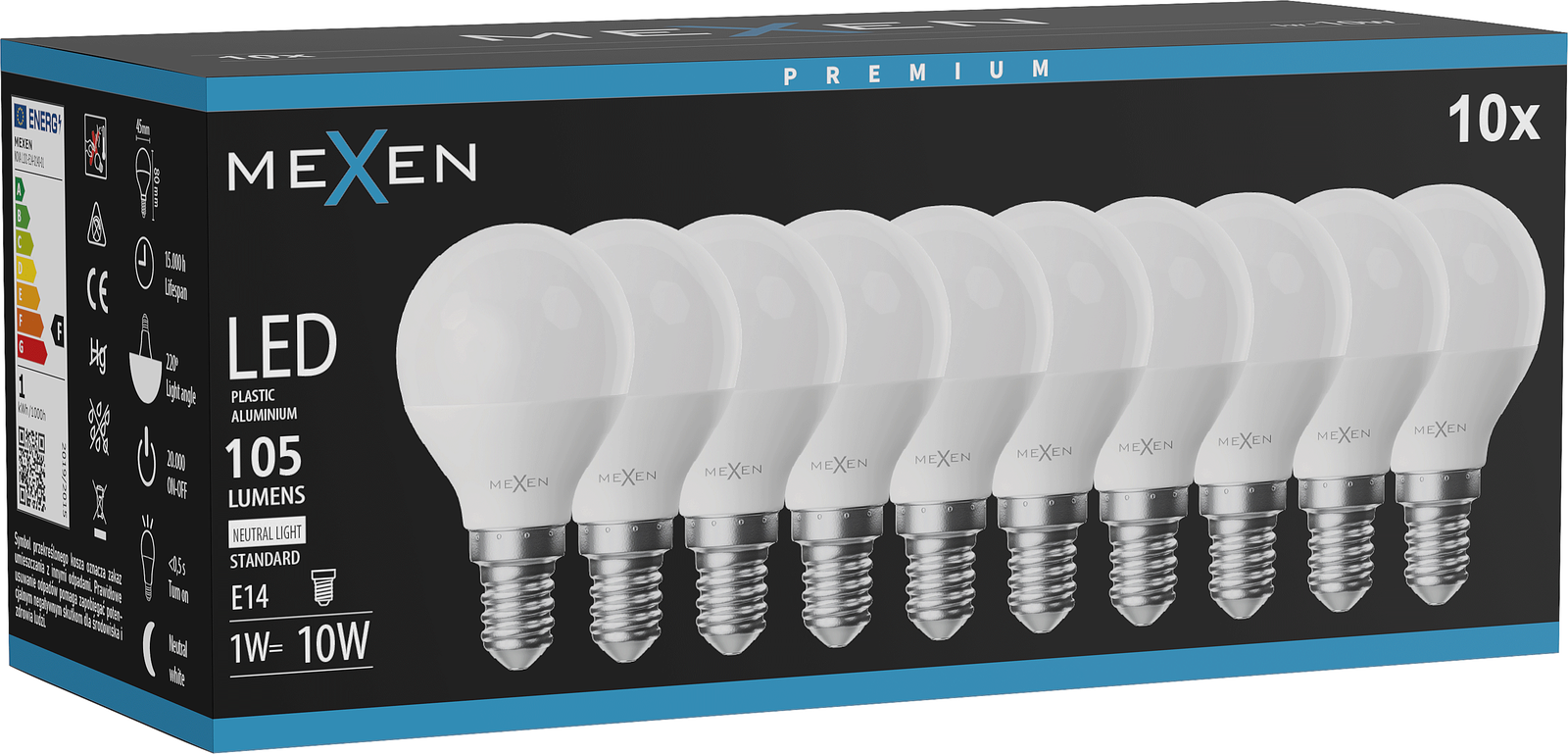 Mexen Nova 10x LED žárovka E14, G45, 1W, Neutralní - 4000K, 105 lm - L101-E14-0140-01x10