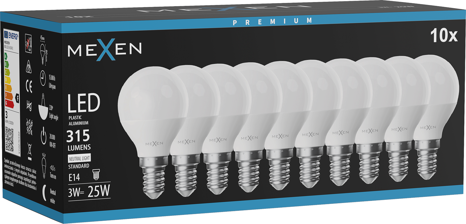 Mexen Nova 10x LED žárovka E14, G45, 3W, Neutrální - 4000K, 315 lm - L101-E14-0340-01x10