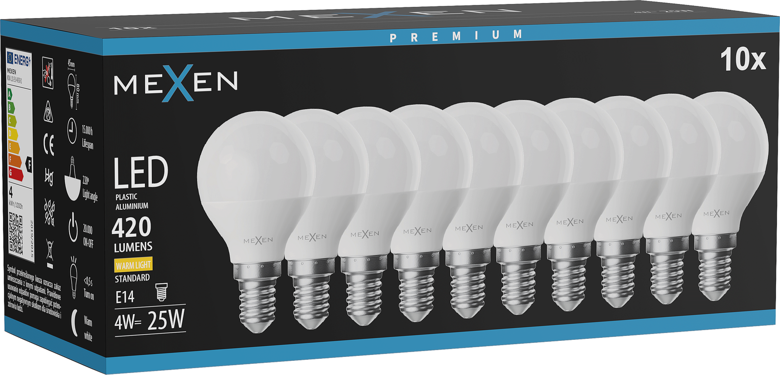 Mexen Nova 10x LED žárovka E14, G45, 4W, Teplá - 3000K, 420 lm - L101-E14-0430-01x10