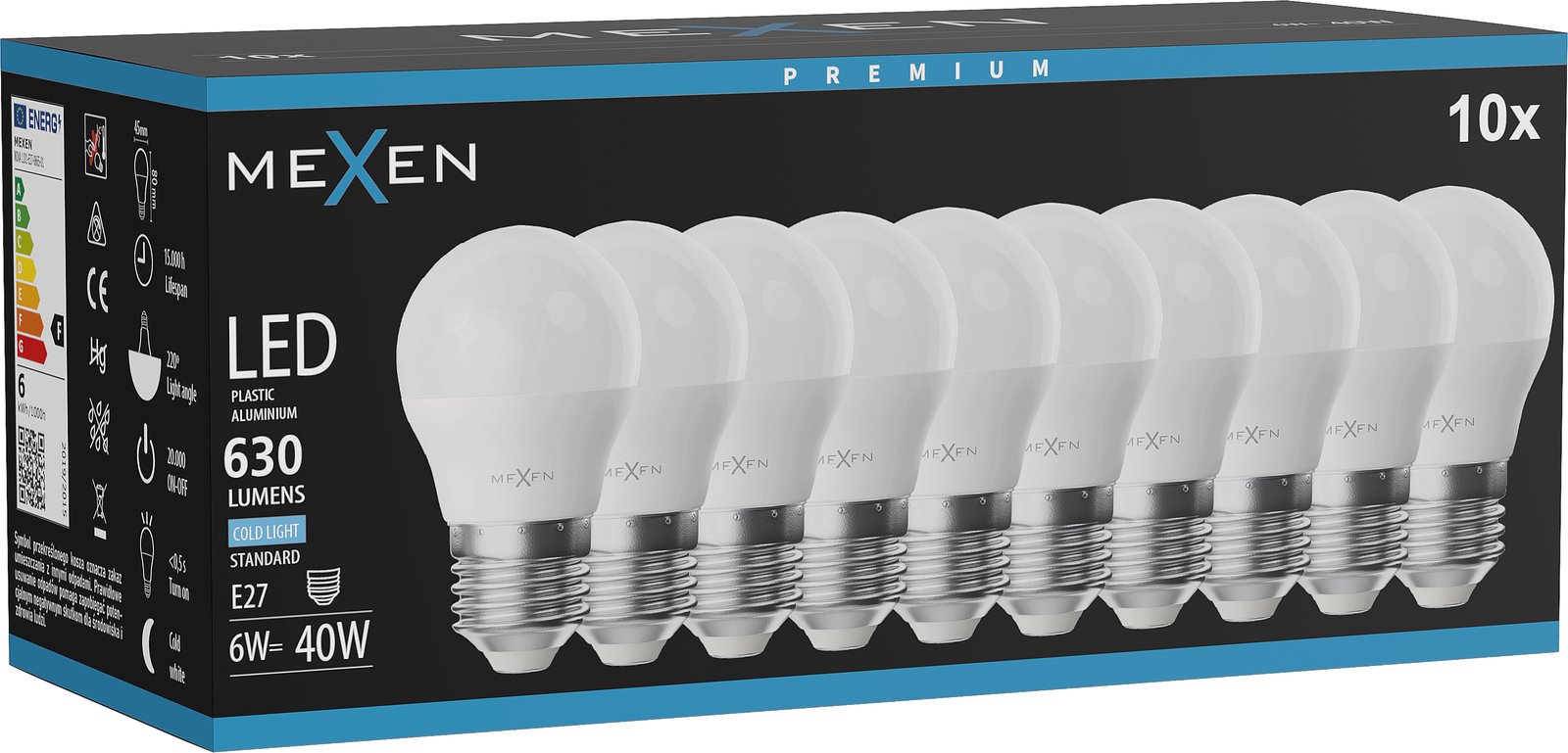Mexen Nova Žárovka LED E27, A60, 6W, Studená - 6500K, 630 lm - L100-E27-0665-01